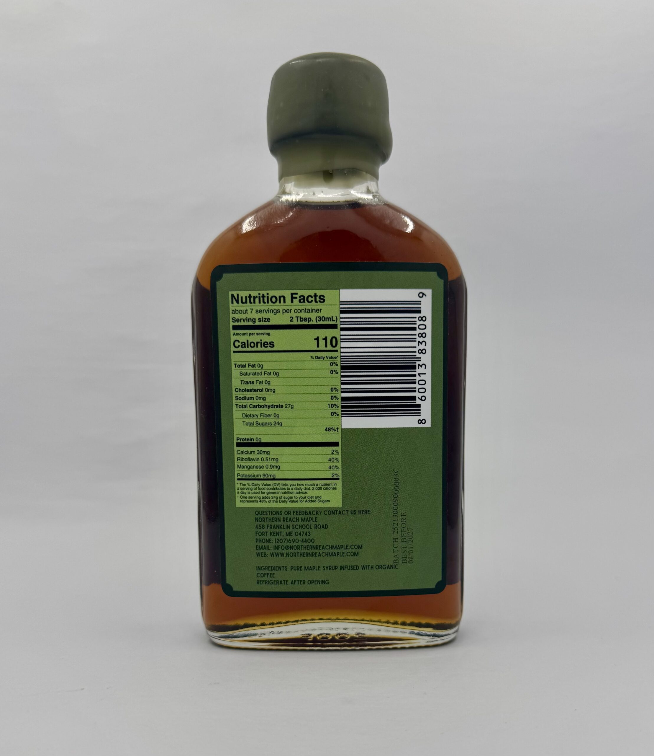 Pure Maine maple syrup slow-infused with organic French roast coffee for a bold, rich flavor.