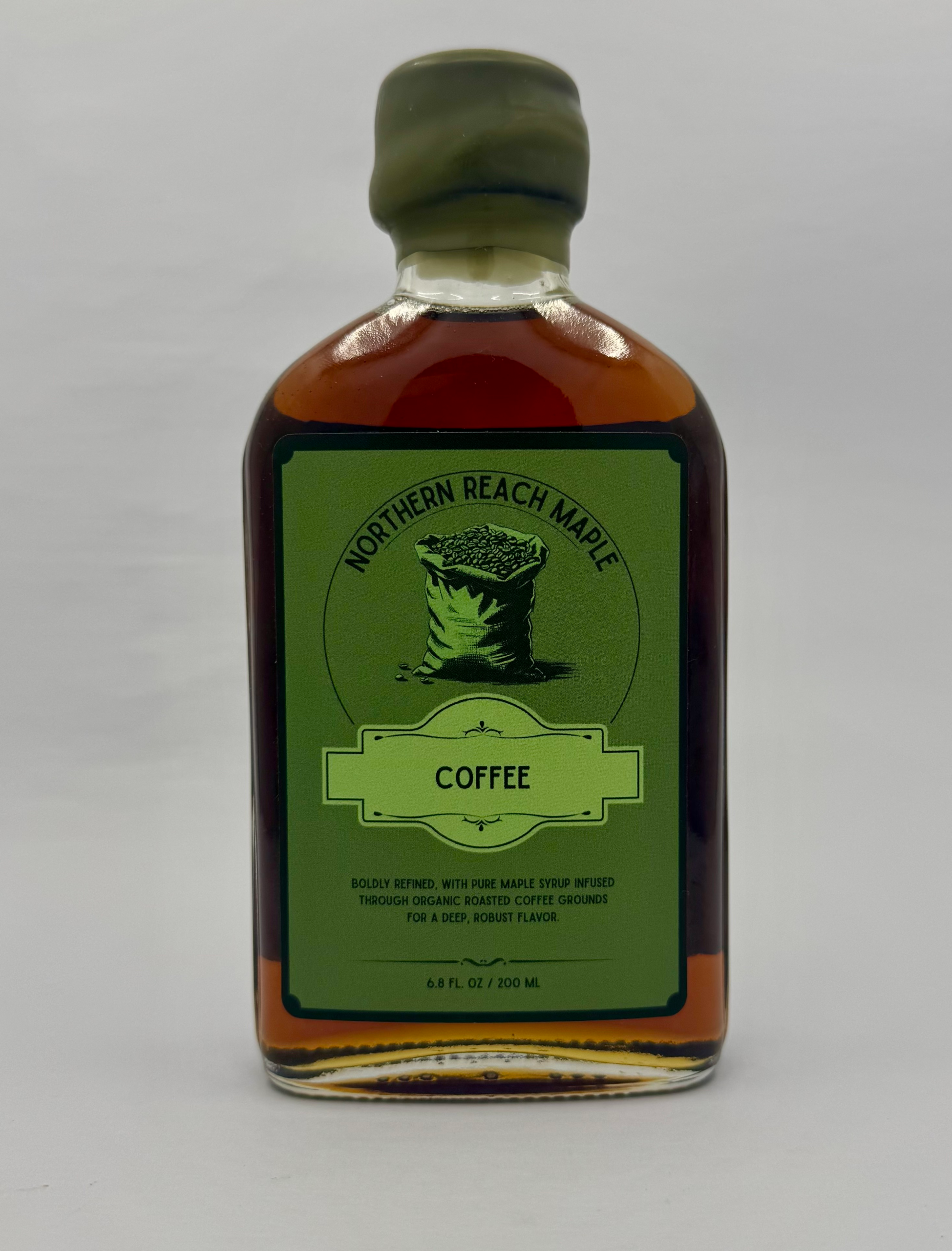 This bold and aromatic coffee-infused maple syrup begins with the same pure, small-batch syrup tapped from old-growth sugar maples in the remote Saint John Valley of Fort Kent, Maine. Sourced from trees rooted in rocky mountain soil and shaped by long, cold winters, the base syrup is rich and complex even before infusion. It carries a natural sweetness and depth of character that reflect the rugged beauty of Northern Maine’s wilderness. To enhance and deepen this profile, we gently bring the syrup to temperature alongside a generous measure of organic French roast coffee grounds, allowing the full-bodied richness of the coffee to steep slowly and thoroughly into the maple.